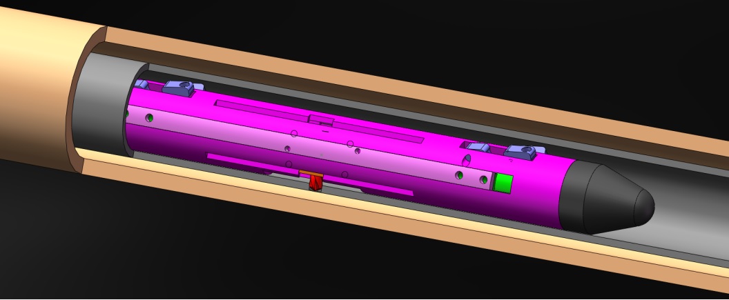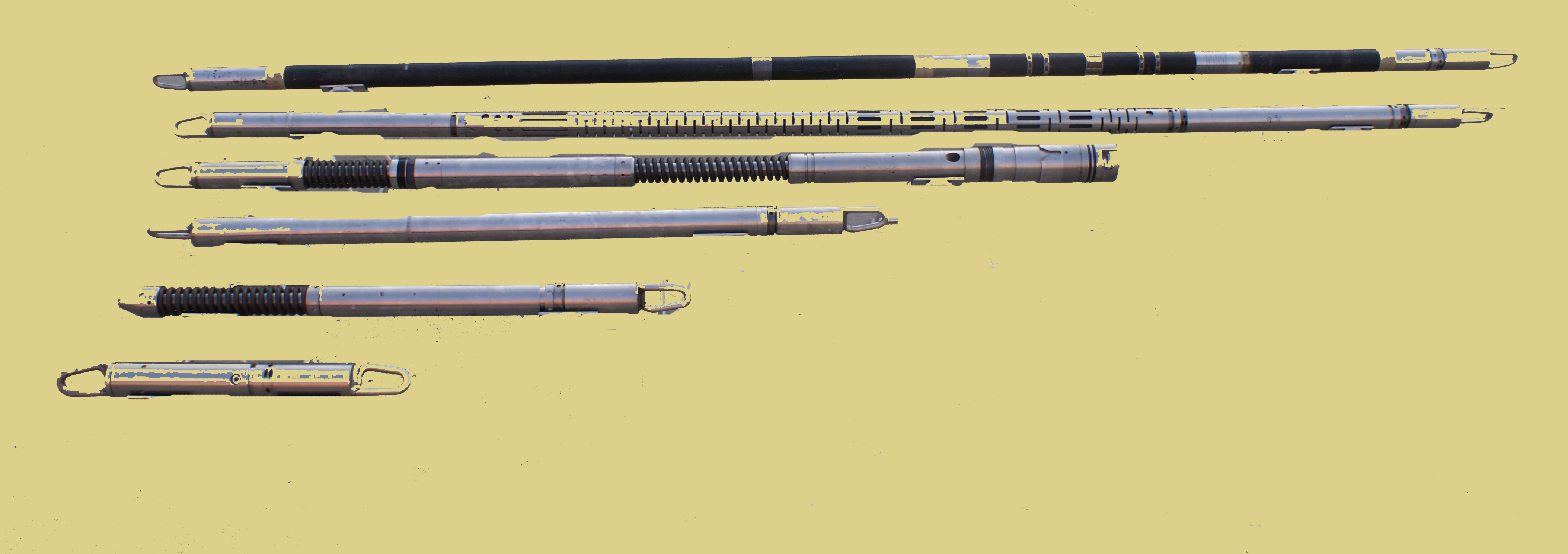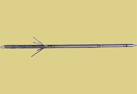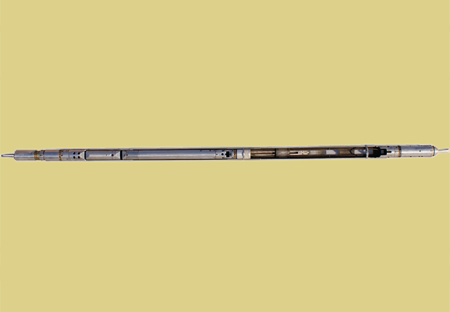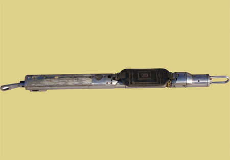 液壓推靠器配接能譜密度與微球復(fù)合探頭,使其貼靠井壁以滿(mǎn)足測(cè)…